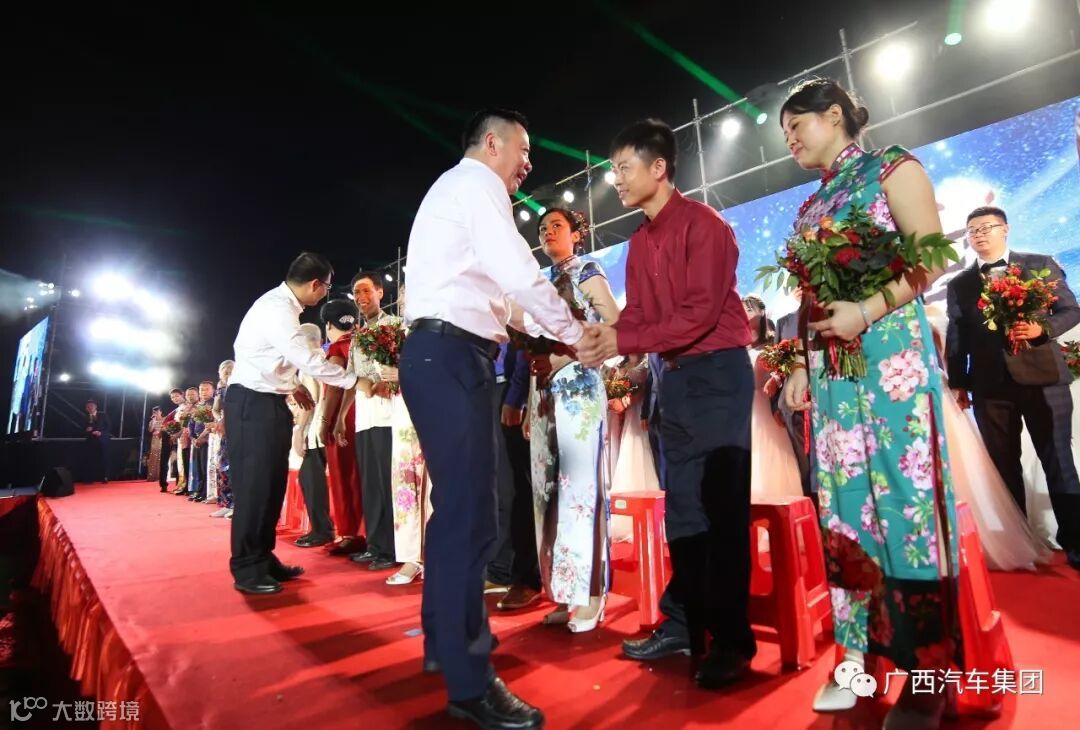 集团总裁助理、五菱工业公司副总经理韦明凤为所有新人证婚:“希望各位新人在将来的生活中,发扬中华民族的优良传统美德,互敬互爱,相互包容,树正家风,共同建立文明和睦、温馨幸福的家庭。”