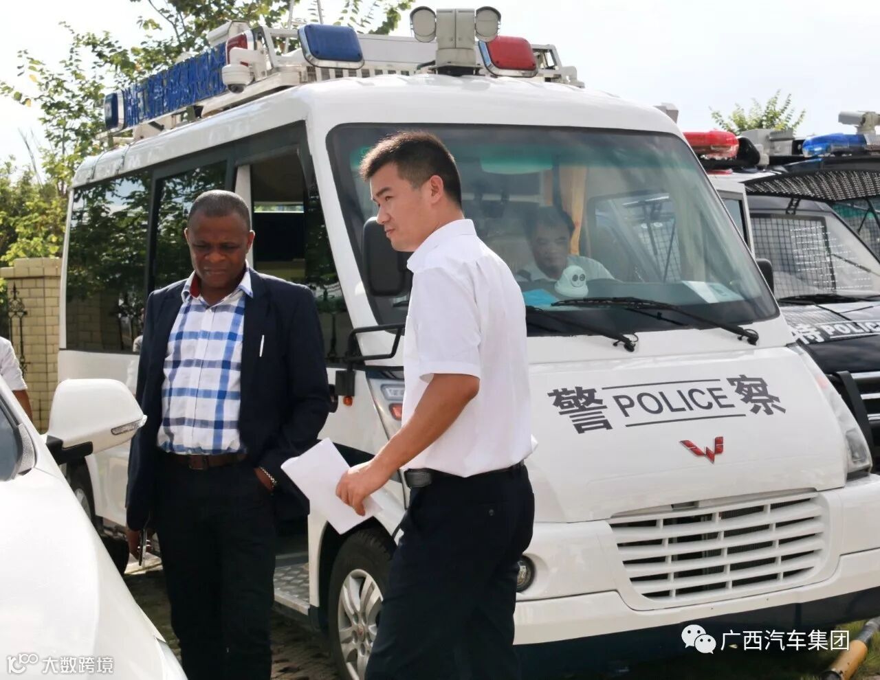 当天天气十分炎热,气温高达30+℃,但尽管如此也阻挡不了加纳友人的看车热情。加纳警察总长ASANTE-APEATU DAVID细心观察现场展示的每一款五菱特种车产品,对公司S100警务平台产品的功能、特性等进行详细品鉴, 当看到M100平台纯电动警务平台时,也产生了浓厚的兴趣,对其新能源动力、小巧外形等特点赞赏不已。
