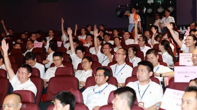 全体与会人员踊跃参与关于党的十九大