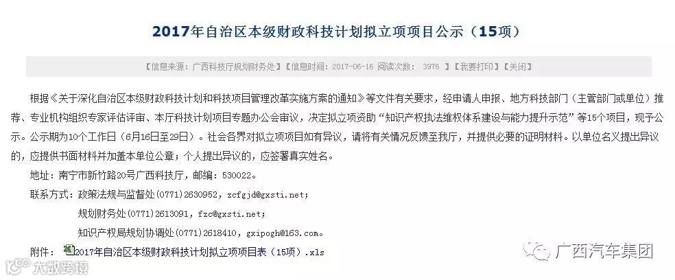 近日,公司顺利通过这个关卡:公司《汽车后桥产品及关键技术专利微导航》项目得到广西科技厅认可,进入2017年广西科技计划拟立项项目公示。