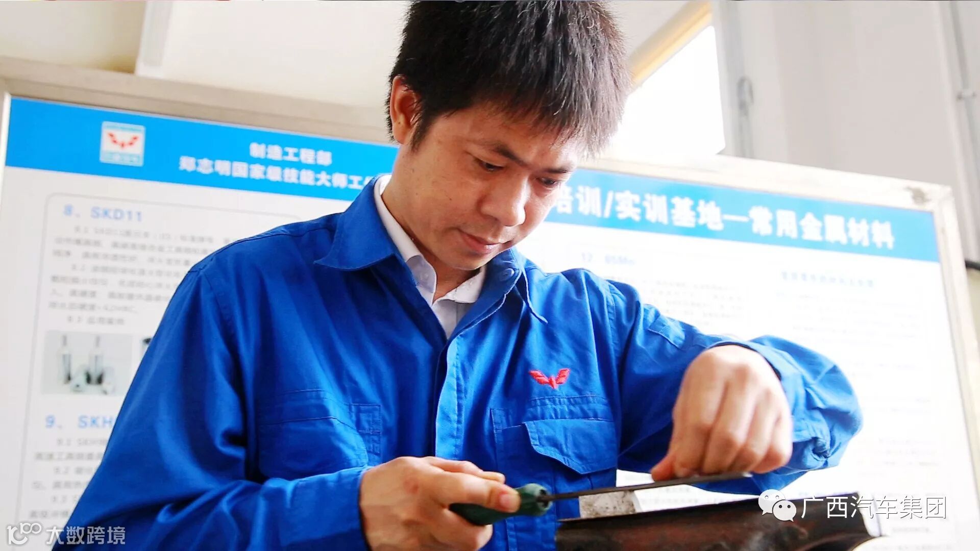 郑志明,广西汽车集团有限公司首席专家、高级技师。他不单单拥有高超的钳工技能,还熟练掌握铣工、车工、线切割等精密加工技能,掌握3D建模及机械设计能力,在设计创新方面也是一等一的高手。1997年毕业后进入公司工作至今20年,2013年获批建设 “国家级技能大师工作室”。