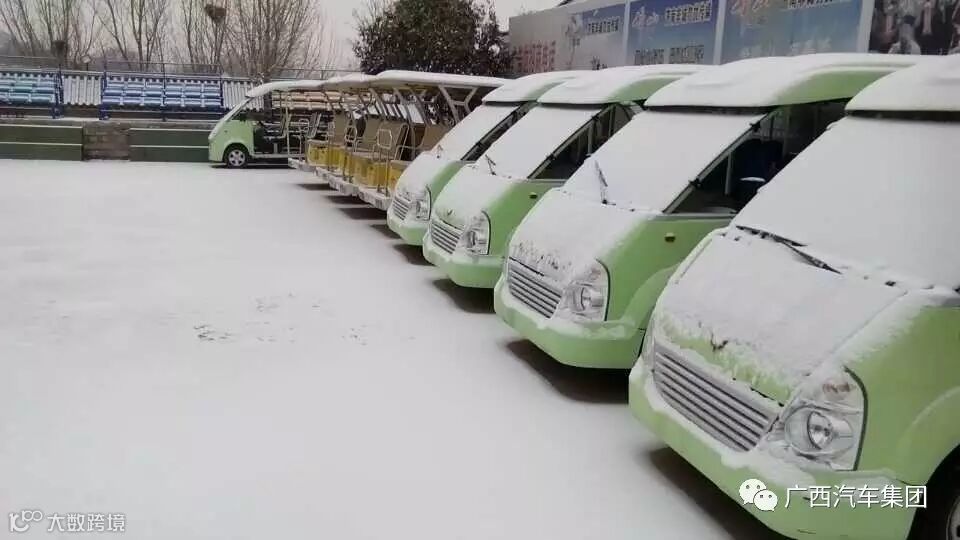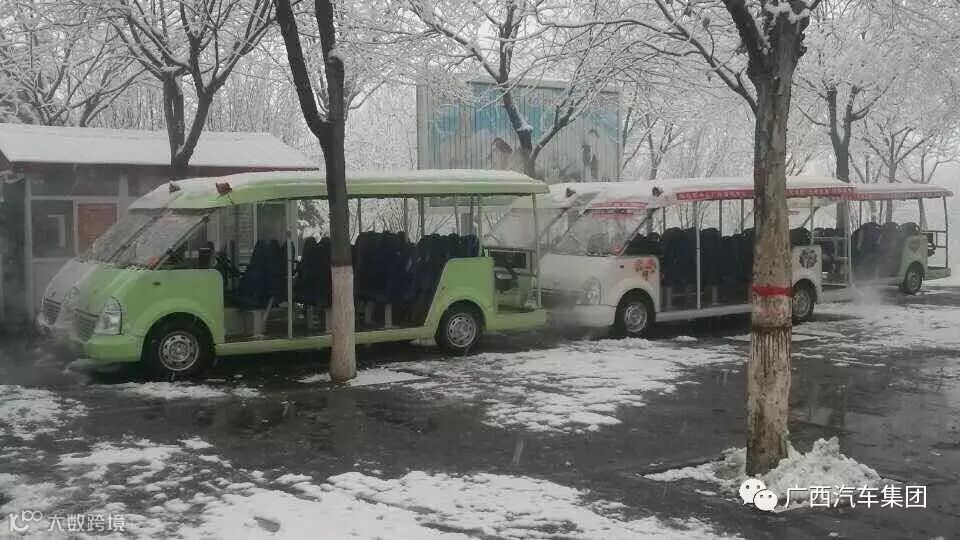 而我们的五菱观光车、五菱校车“银衣素裹”