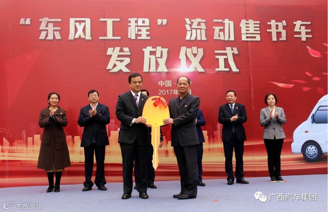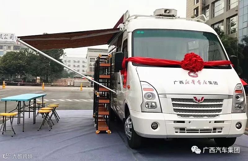 今天,“东风工程”流动售书车发放仪式在南宁举行。公司为广西新华书店集团专属全新定制生产的,肩负广西14个地级市62个县“精神食粮”重任的62辆五菱流动售书车正式交付使用!