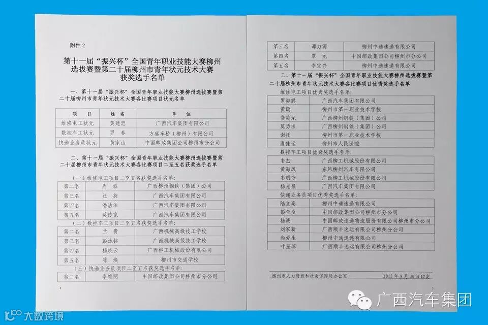 经过激烈角逐,我公司选派参加维修电工、数控车工比赛的11名青年技工,共6人获奖,其中黄建忠获得维修电工赛项第一名,被授予“第十一届柳州市青年技术大赛状元”称号,汪旋获维修电工赛项第三名,潘沾泊、莫传宽分别获维修电工赛项第四名、第五名,罗海聪、杨光泉分别获维修电工赛项、数控车工赛项优秀奖。