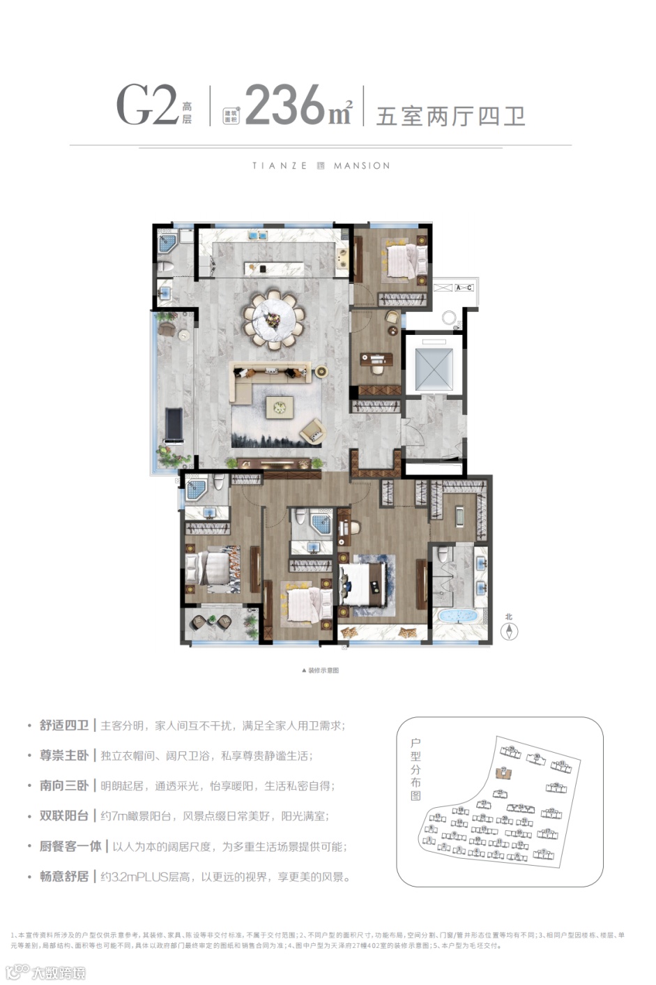 高手如林的大平层市场,拼的就是无数的产品细节,越是大手笔的空间规划,越是需要缜密的洞察。天能·天泽府建面约236㎡观湖大平层,270°环景天幕,将瞰湖优势发挥到极致;独立电梯厅入户、3.2米层高的高窗墙比、入户玄关处预留的独立衣帽区等细节,都太能俘获人心……