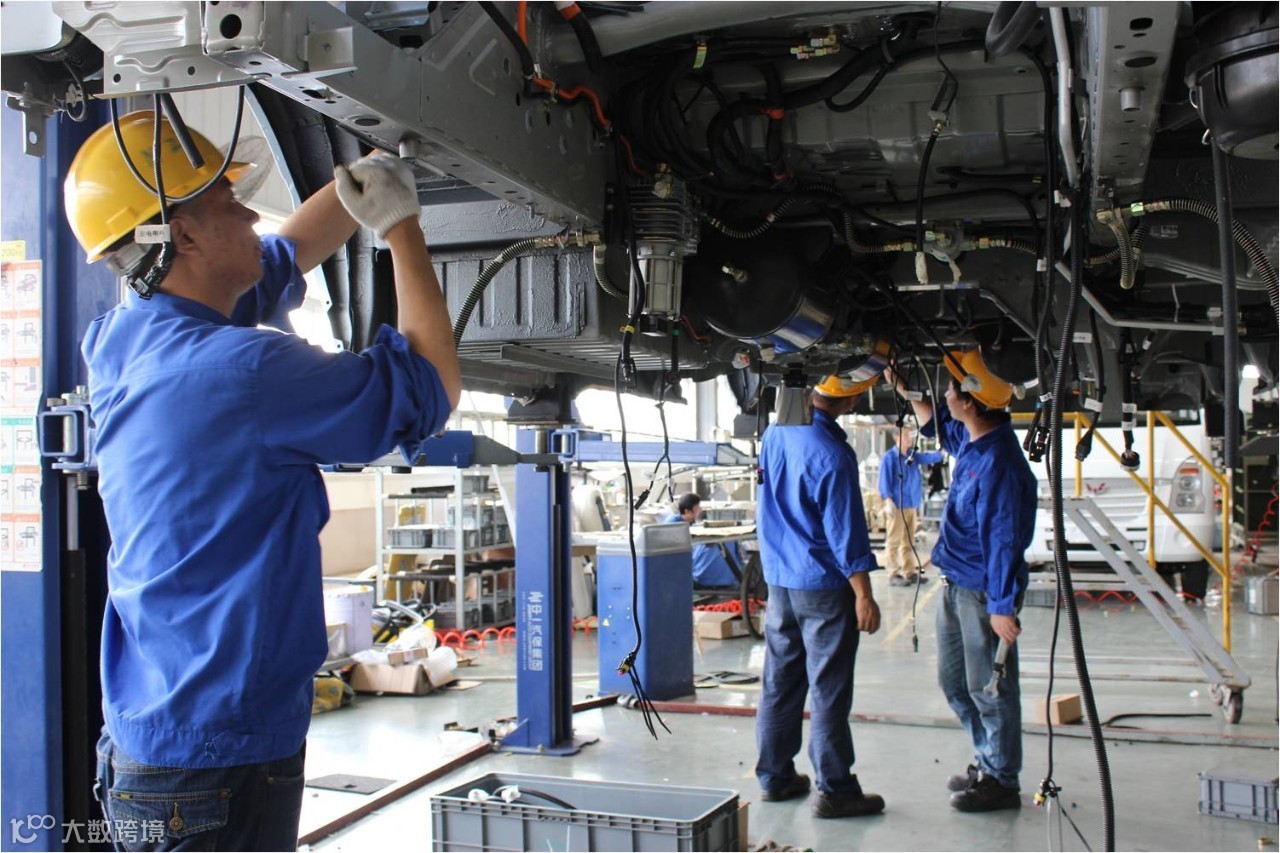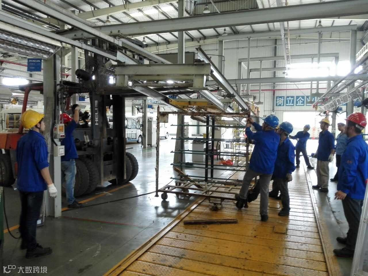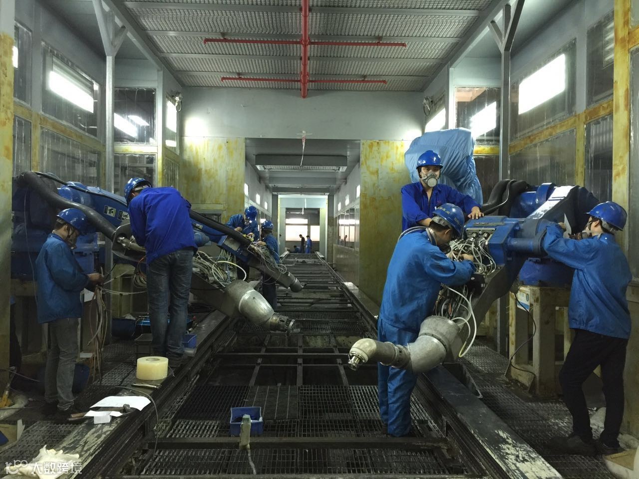 专用车厂利用假期进行生产线搬迁和改造工作,图为员工正在拆除原有的助力设备支撑导轨。