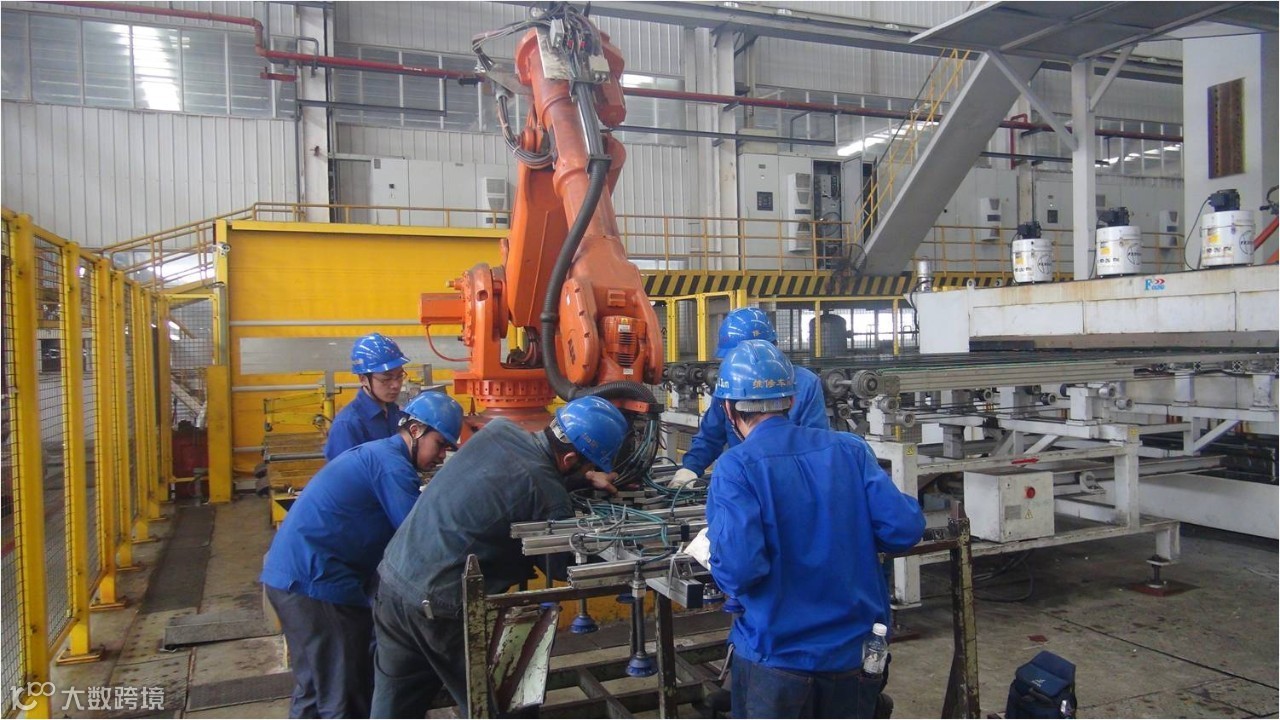 冲焊件厂员工正在对自动化抓料机器人进行维修。
