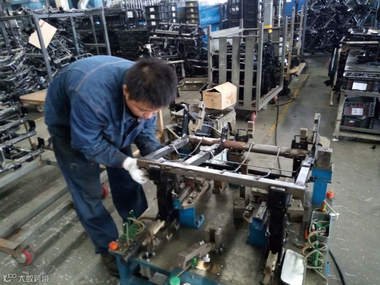 座椅厂员工全心投入到为新生产线制作料架的任务中。