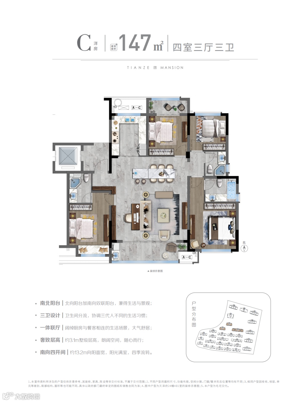 天能·天泽府,24#楼央景洋房,以奢阔视野、创新型架空层空间和建面约147㎡的空间尺度,承载高品格城市生活。