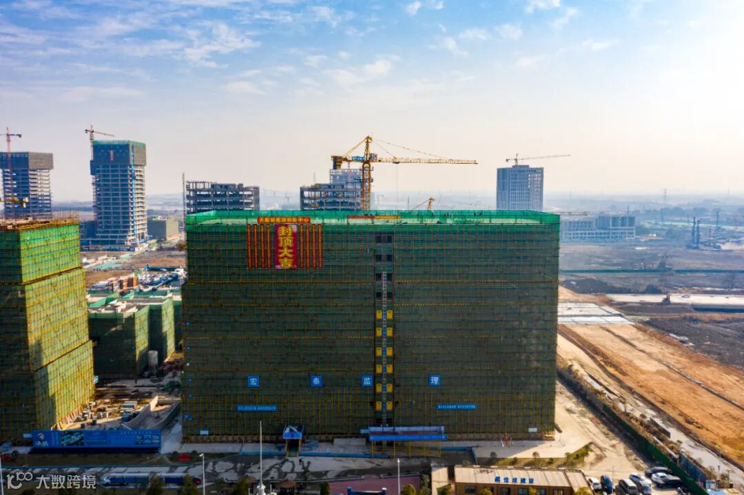 历经一年精工缔造,在多方共同努力下。2021年12月31日,随着工程进展有序推进,天能新能源创新中心喜结金顶。这标志着项目取得了重要阶段性胜利,具有里程碑式的意义。