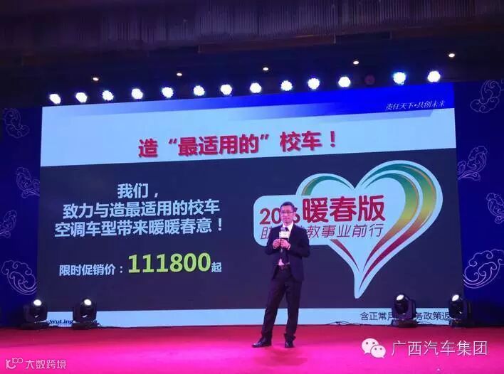 本次大会在明确2016年目标的同时,也带来了一个令人兴奋的消息:“2016暖春版校车”暖心上市。公司为满足更多用户需求,在春季活动期间推出一款特供空调专用校车,在确保质量的同时,价格方面做到极致的优惠(111800元起),践行校车普及的先行者和责任担当者的许诺。