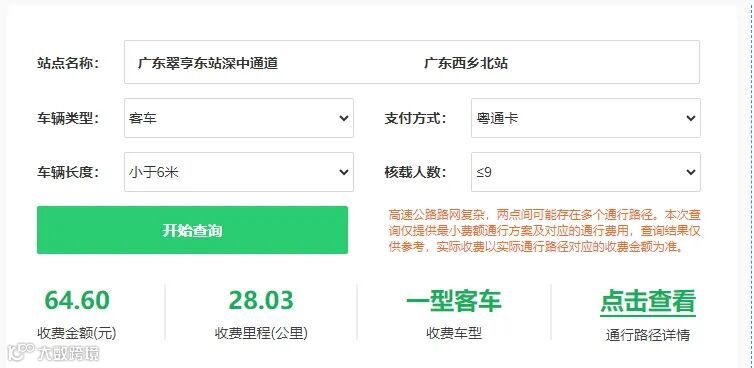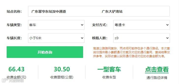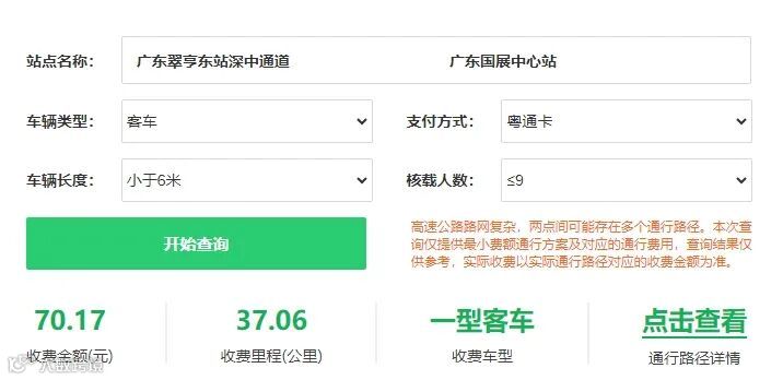 5月31日,小编按“车辆宽度小于6米、核载人数≤9人的客车、粤卡通支付”方式查询,部分经深中通道、中开高速的收费站。