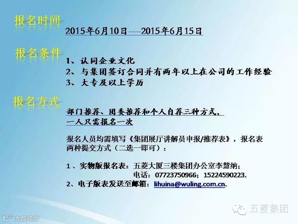 备注:报名表自行到公司交换文件夹下载。存放路径:\\wlai\00Exchange\02临时交换文件(自定义保留期限最长30天)\集团展厅讲解员招募