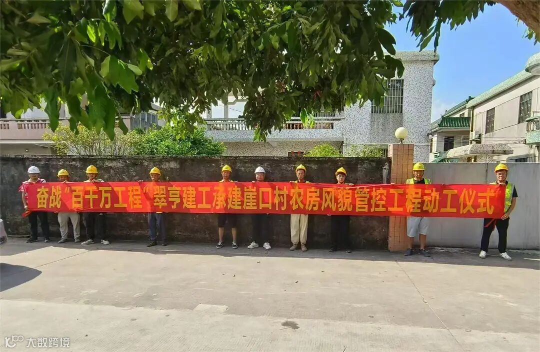 8月8日,围绕推进“百千万工程”典型村(崖口村)培育建设工作,由翠亨建工公司承建的崖口村农房风貌管控工程举行动工仪式。