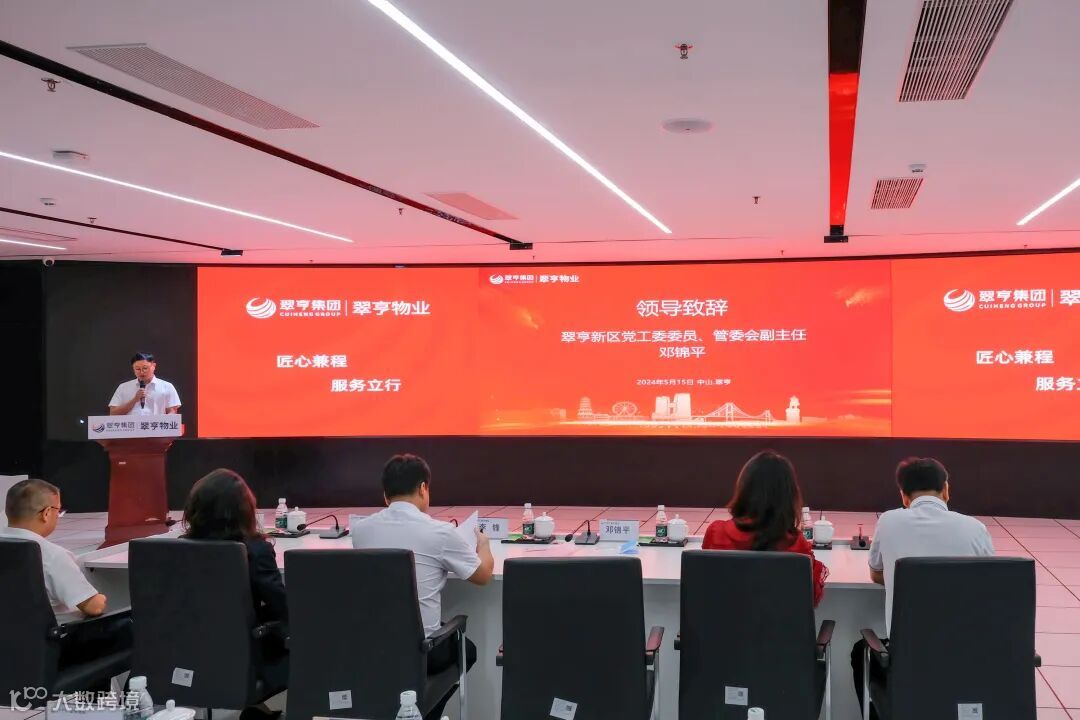 5月15日,中山翠亨物业服务有限公司(下称“翠亨物业”)揭牌暨翠亨集团智慧园区指挥中心启用仪式在翠亨国际科创中心顺利举行。翠亨新区党工委委员、管委会副主任邓锦平,翠亨新区党工委委员、翠亨集团党委书记、董事长李锋,以及中山国际人才港服务中心、翠亨集团及下属公司相关负责人,翠亨物业公司全体员工出席仪式。