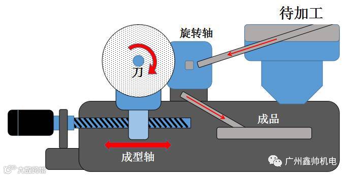 主轴伺服电机为主导,其他伺服电机通过独特的数学模型做跟随运动,构建成一个多形状切削加工系统。主轴,复责加工产品的连续输送;夹具轴,负责每个产品旋转加工;滑台轴,负责产品切削加工。