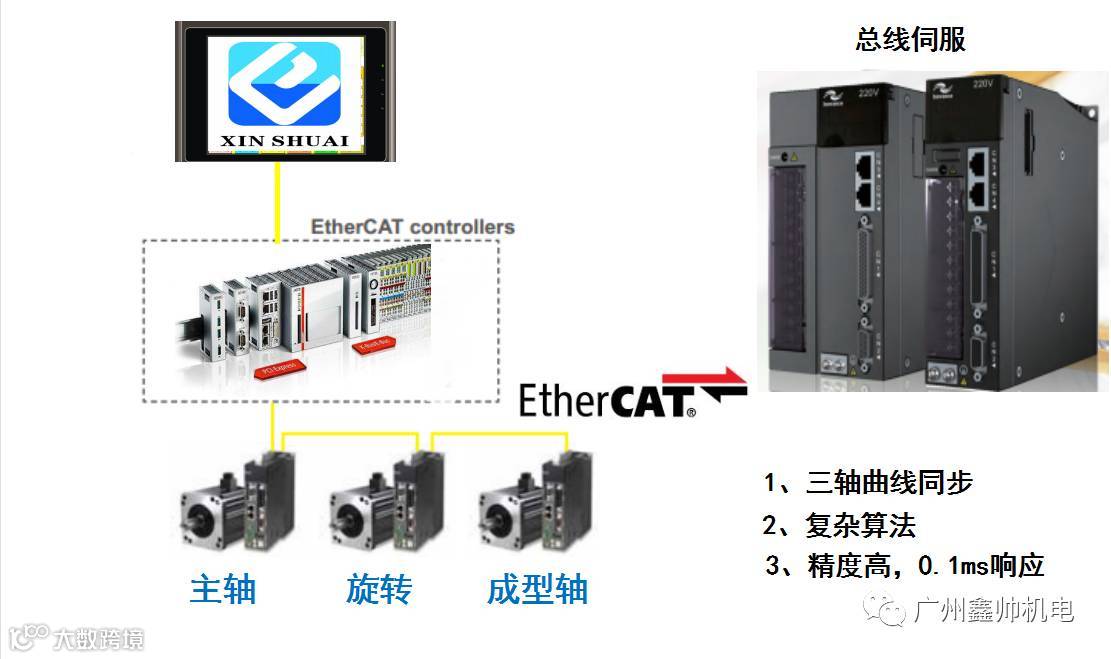 作为一家立足华南、辐射全球的高新科技企业,广州鑫帅机电设备有限公司研发的贴片电感控制系统打破传统脉冲/模拟量的控制模式,采用总线(网线)的模式,4核CPU处理控制程序,控制器运行速度到10微秒 。同时简化了机械结构,采用电脑控制伺服的绝对位置同步方式,摆脱传统的万向节机械联动方式。