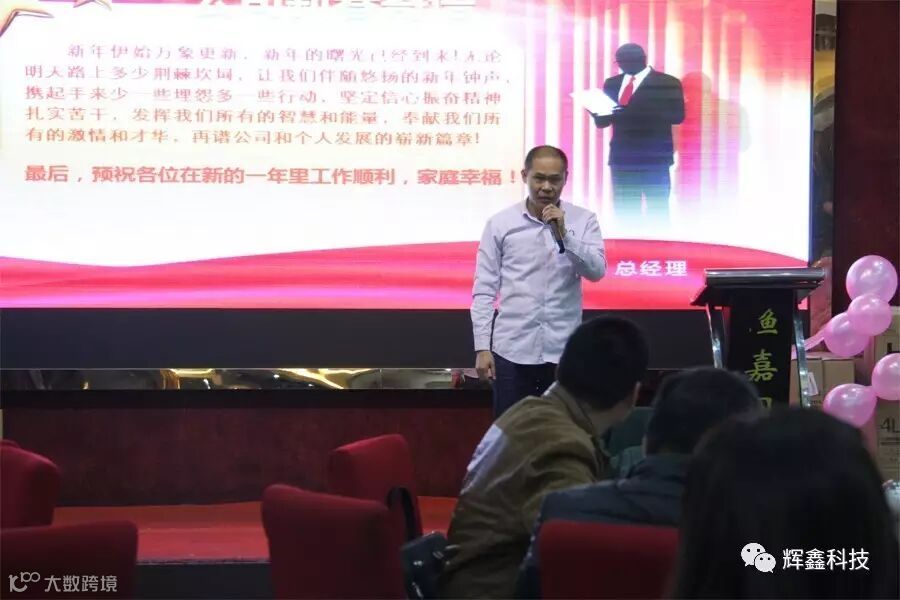 年会现场,行政总监李总作了过去一年的工作汇报。报告中,总结了广州辉鑫科技全体员工在2016年中取得的优异成绩,明确了2017年生产目标、经营规划、工作重点等。