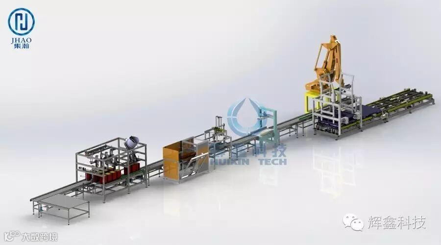 广州辉鑫科技产品一直以客户要求进行个性化设计、操作简单 、移动方便,灌装速度快、准,能一机多用,稳定性能好。全自动生产线有自动上桶,自动分桶,自动灌装,自动排位,自动灌装,自动放盖,自动压盖,自动定位,自动贴标,自动扫描,自动码垛等功能。