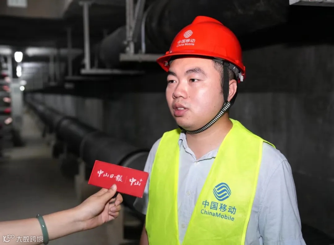 ▲中山移动中山分公司工作人员向记者介绍与中山翠亨集团下属管信智汇公司共同做好深中通道通信保障情况