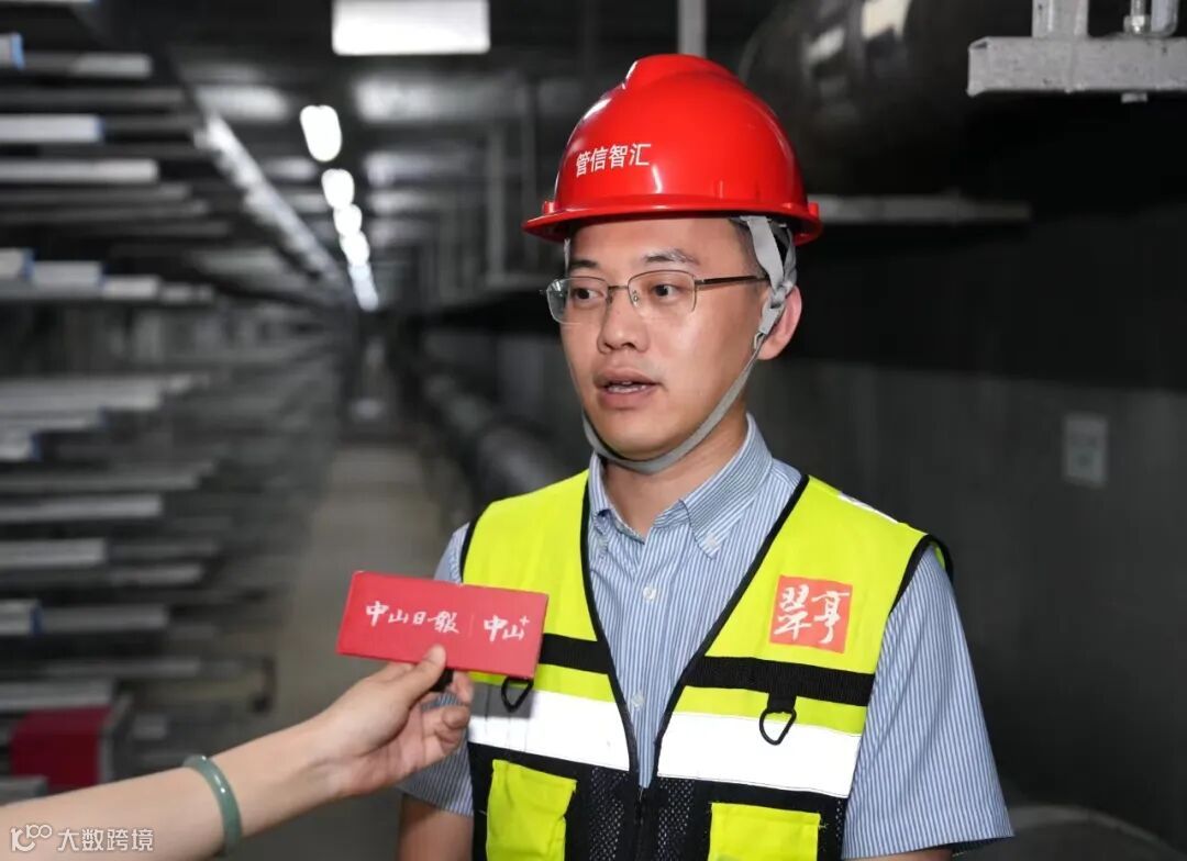 ▲中山翠亨集团下属管信智汇公司副总经理陈伟杰向记者介绍综合管廊运行维护服务情况