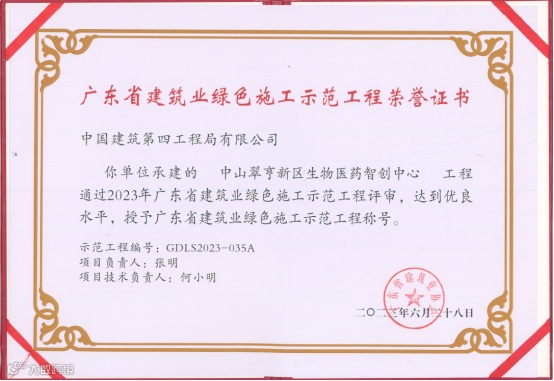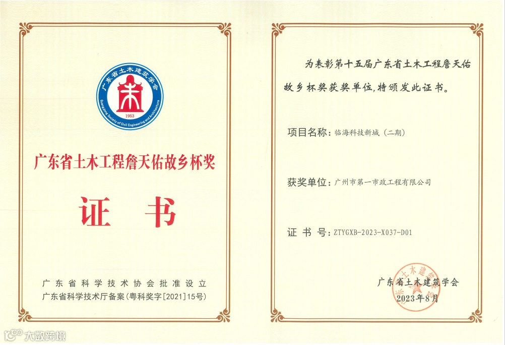 荣获“2023年度广东省土木工程詹天佑故乡杯奖”“2023年度中山市建筑工程优质奖”“广东省建设工程优质结构奖”“广东省建筑业绿色施工示范工程”“中山市风景园林工程质量金奖”等荣誉。