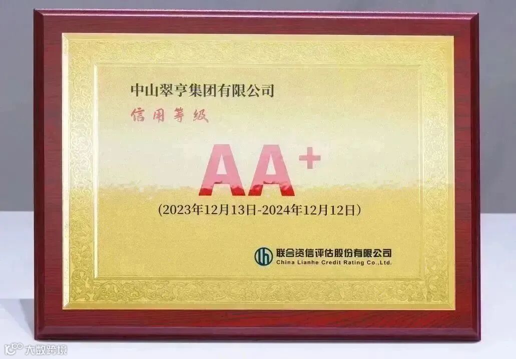 12月13日,经联合资信评估股份有限公司综合分析和评估,确定中山翠亨集团有限公司主体长期信用等级为“ AA+ ”评级,展望为稳定。