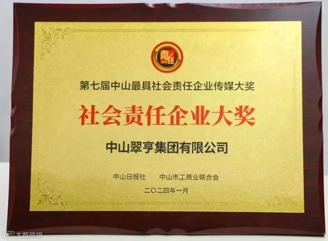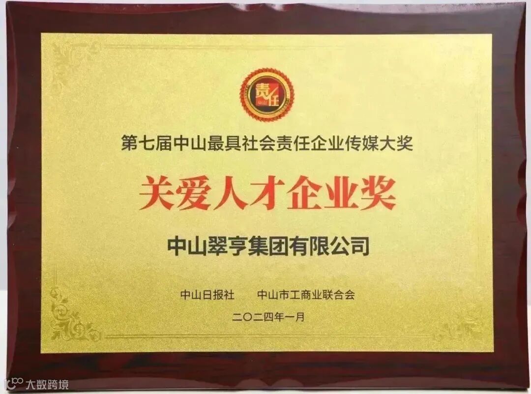 第七届中山最具社会责任企业传媒大奖评选,翠亨集团本部获“社会责任企业大奖”“关爱人才企业奖”,集团下属二级公司城更公司、三级公司西湾智慧公司分获“工改卓越先锋企业奖”和“高质量发展企业奖”。
