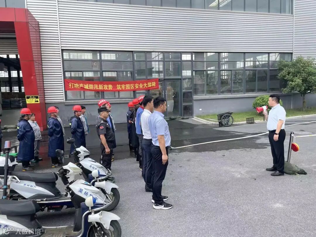 响应全国第21个安全生产月,落实集团安全生产月部署,产城事业部为进一步检验、提高防汛应急处置综合能力,全力保障园区业主生命财产安全,2022年6月21日16时,煤山产业园物业服务中心在产业园B3门口举行防汛应急演习。