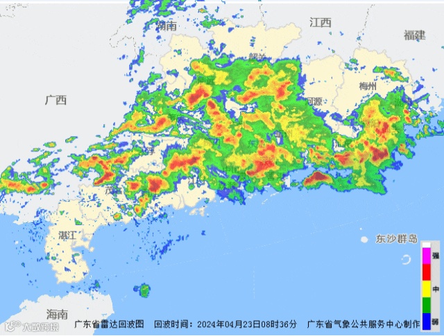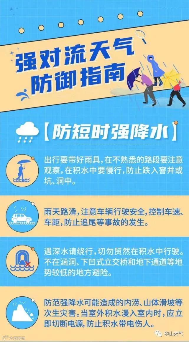 目前江门方向再有强雷雨云团移近我市,预计未来1-3小时我市雨势增强,伴有强雷暴及6-8级大风,最大小时雨量40-60毫米。中山市气象台2024年4月23日9时45分将全市暴雨预警信号升级为橙色。
