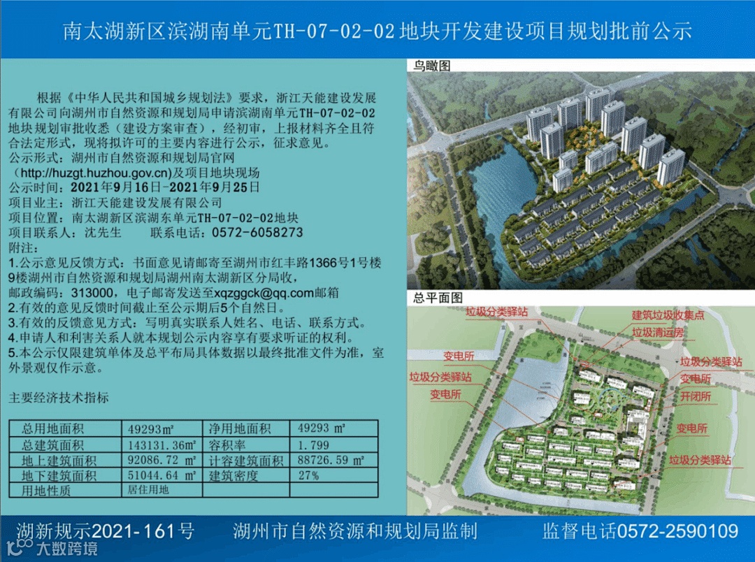 9月16日,天能集团位于南太湖新区滨湖南单元TH-07-02-02地块项目得到了湖州市自然资源和规划局的住宅项目规划批前公示。