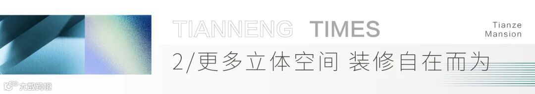 天能·天泽府约2.95米-3.2米普宅层高,无论是想要安装奢华吊灯,用来赏心悦目,亦或是中央空调、新风地暖,都可以尽情安置。还可以设置各种储物空间,用于收纳,保持家的整洁度。