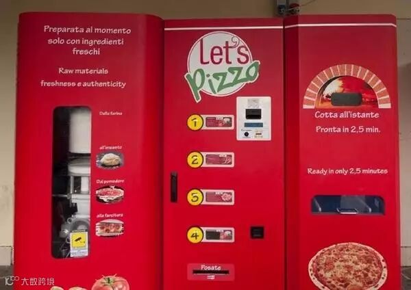 无独有偶,热爱披萨的意大利人民也发明了可制作新鲜披萨的自动贩卖机。投币下单后,机器内部就会开始运作,混合面粉和水,压制成饼胚。顾客可挑选是否增加肉类和蔬菜,再搁上番茄酱和芝士片,披萨饼就会被送入 380 度高温的烤箱。你可以通过一个玻璃小窗看到烤制过程,再等上一段时间就可吃到热腾腾的披萨了。每份披萨售价 5.95 美元,有四种口味选择。按这种思路,中国人民开发包子贩卖机、煎饼果子贩卖机也是迟早的事。