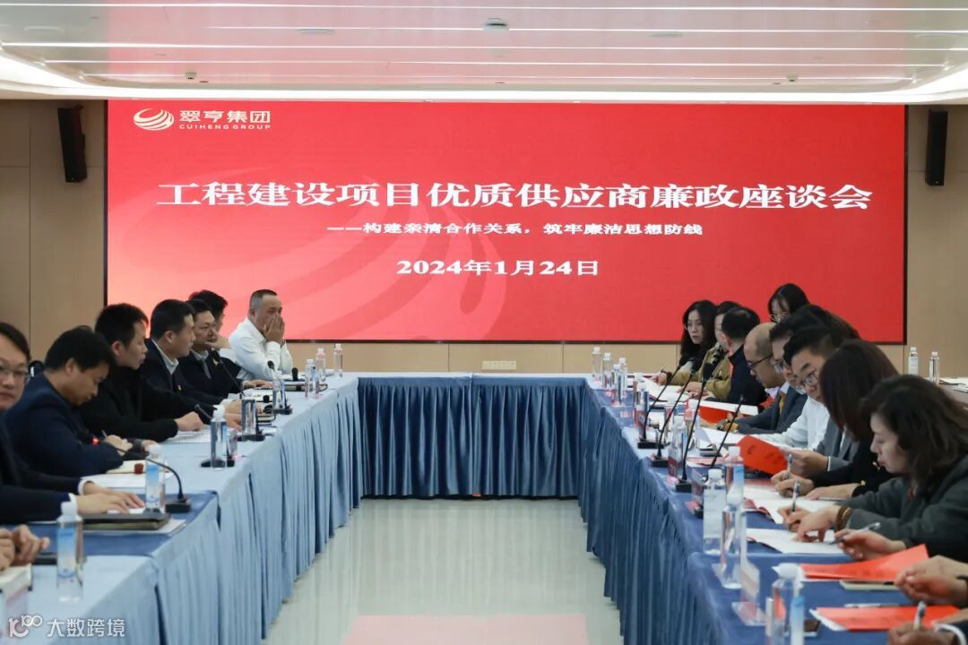 1月24日,为切实履行国企使命担当和责任,持续推动构建“亲清”合作关系,翠亨集团首次举办以“构建亲清合作关系,筑牢廉洁思想防线”为主题的工程建设项目优秀供应商廉政座谈会。翠亨新区党工委委员、集团党委书记、董事长李锋,翠亨集团党委委员、纪委书记黄明念,翠亨集团副总经理朱俊樸,下属企业相关负责人及优秀供应商代表参加。
