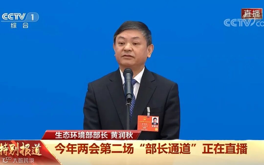黄润秋的首次公开亮相,半小时内回答了四个问题,是今年“部长通道”中答题最多的部长。