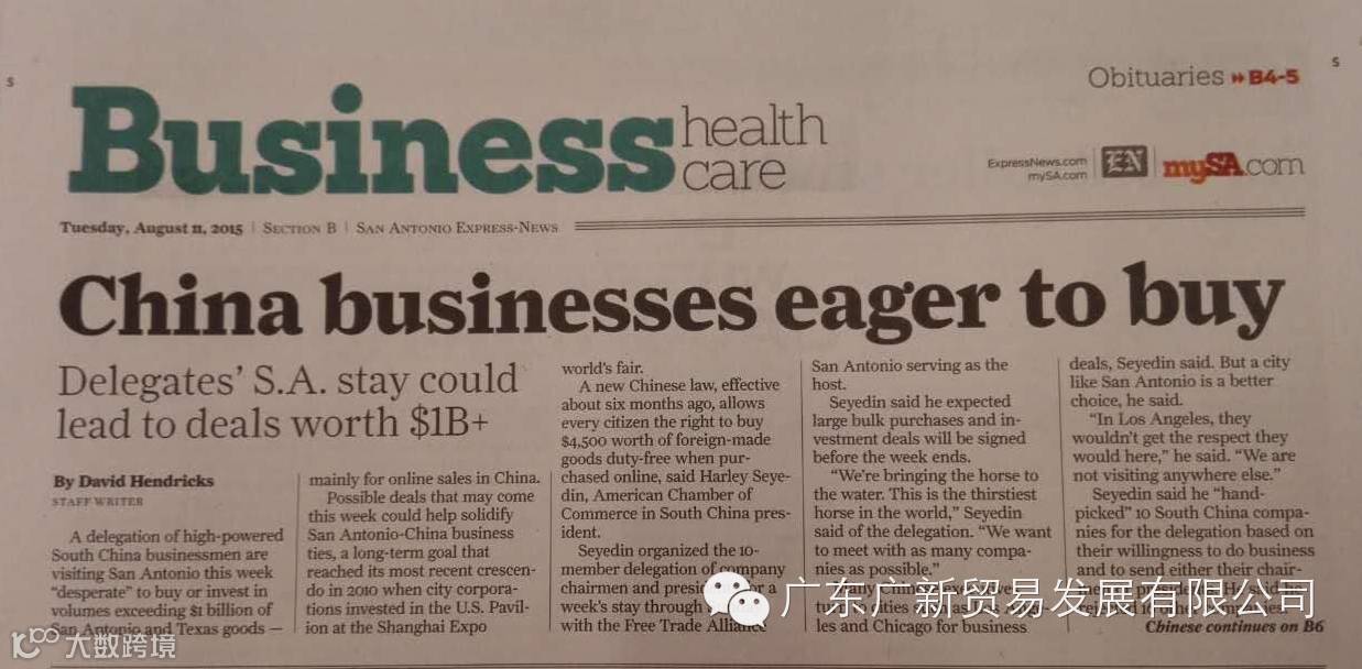 当地主流媒体大幅报道了此次商务访谈,德州政府十分看好跨境电商的发展,认为将对两国将带来双赢的经济效益。本次会谈两国企业共签订了超过十亿美元的投资和购买意向书,主要集中在国际贸易和电商线上销售业务。