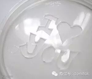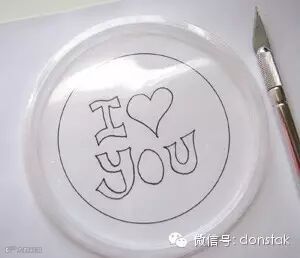 ● 用刀片沿着底下纸模的印记在塑料盖上刻出镂空的轮廓。