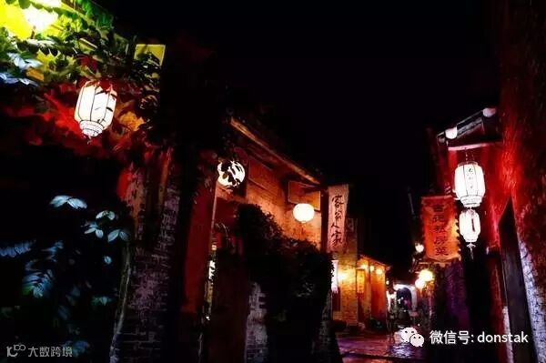 到了夜晚,大红灯笼高高挂起,点亮了万众风情,石板路磨碎了光影,照映出行人摇曳的梦,街巷里弄是不同白日的斑斓,不多的咖啡馆及酒吧里却可以寻找到想要的明寐与风骚。如此妩媚多姿才当得起“夜色”二字。