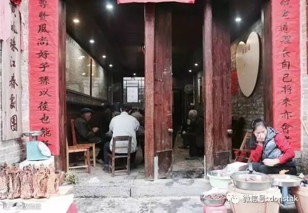 而小桥那头,兴宁庙前的真武亭上面的楹联“且坐喫茶”,引人神思。出自清朝举人林作楫,现已被收录在《中华名匾》中。