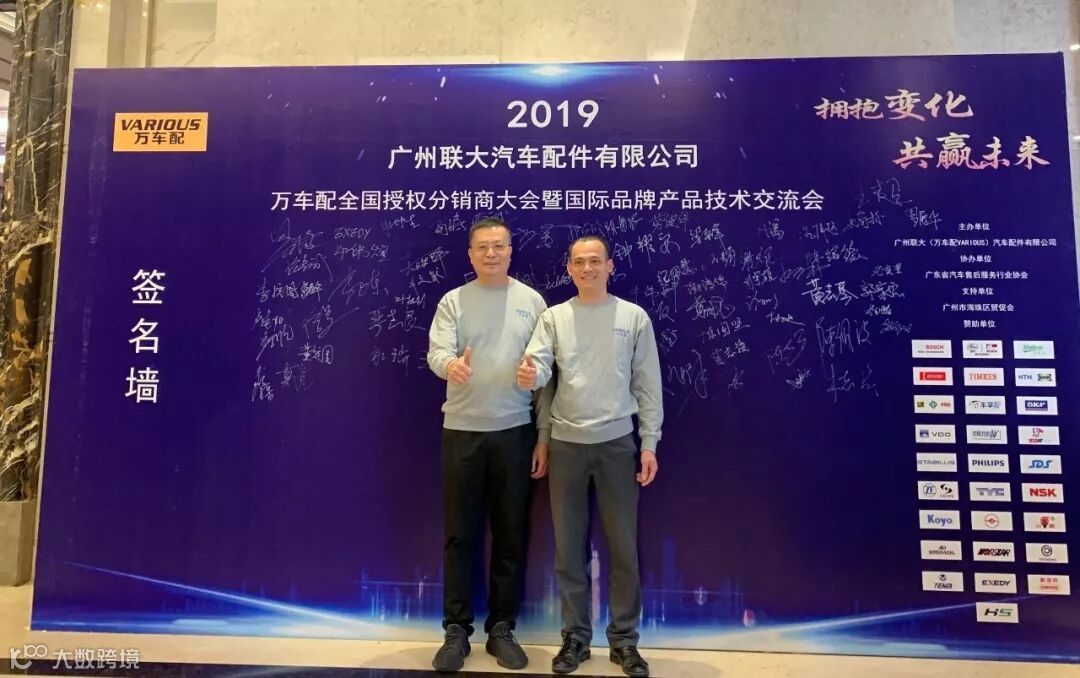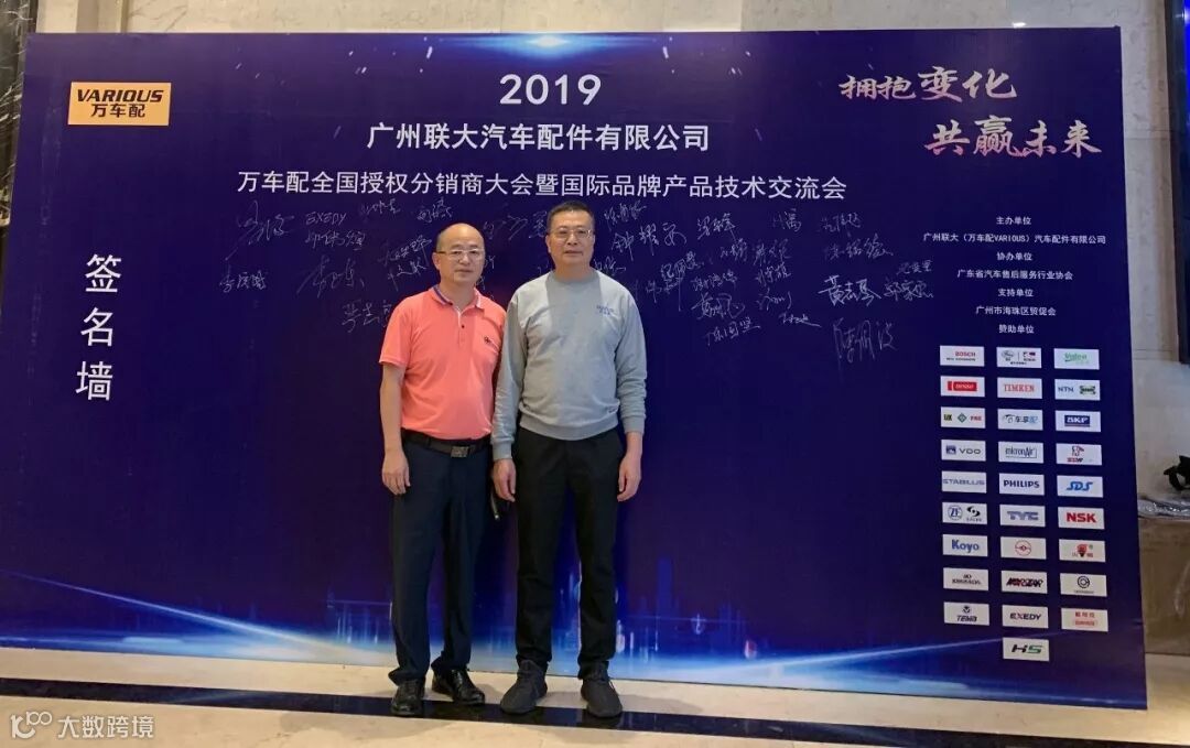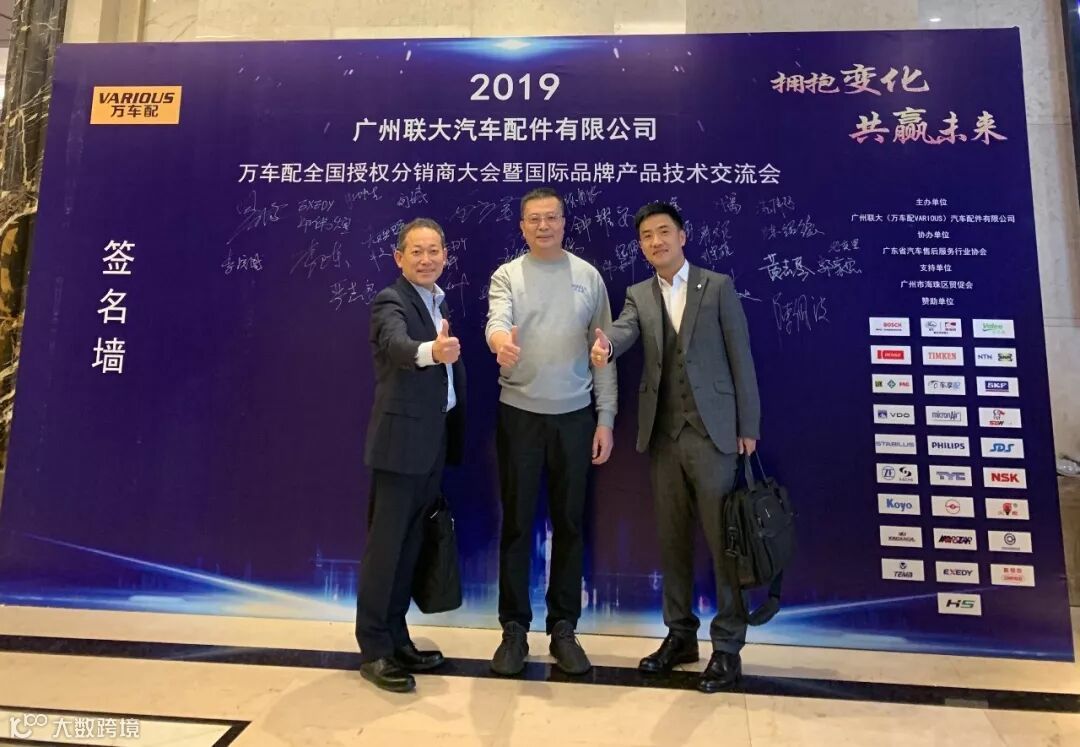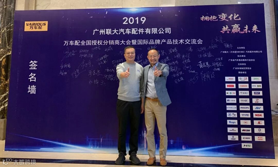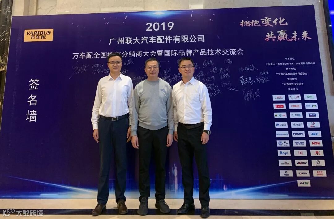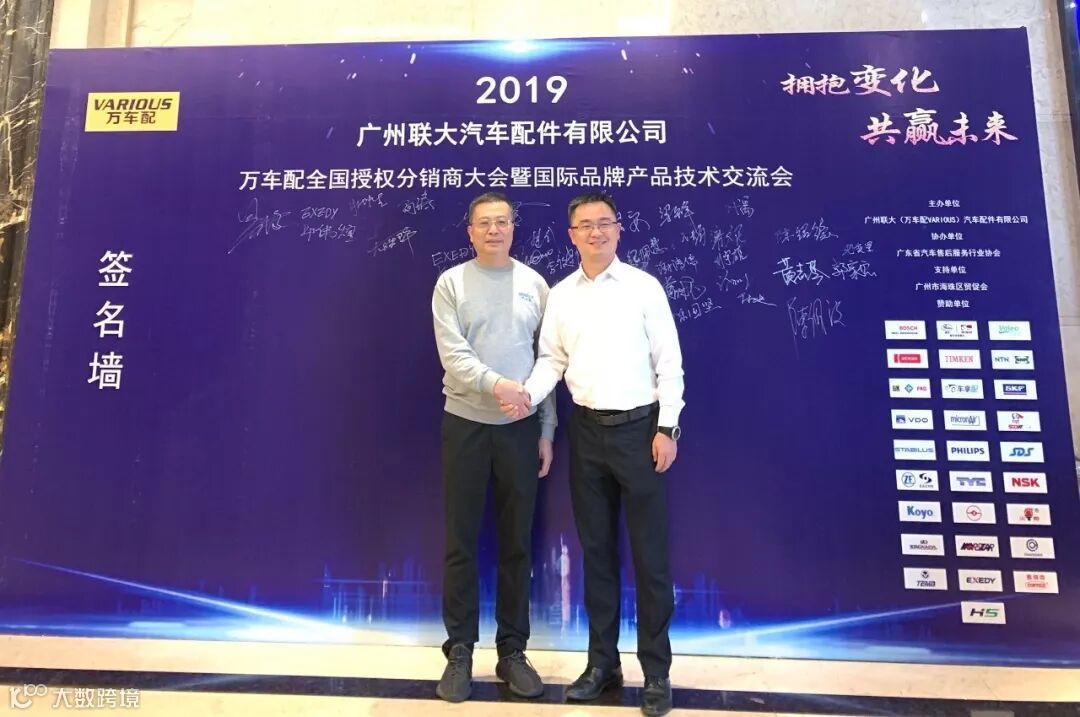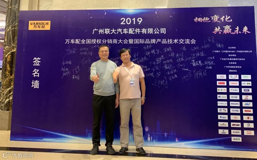 2019年10月11日,在美丽的羊城广州举行了广州联大汽车配件有限公司 — 万车配全国授权分销商大会暨国际品牌产品技术交流会。大会在广州海珠区卡威尔酒店举行,由广州联大汽车配件有限公司主办,广东省汽车售后服务行业协会、广州市海珠区贸促会协办,并有众多国际品牌公司支持,包括:博世、盖茨、法雷奥、日联电装、上海车享、大陆(VDO)、铁姆肯、斯凯孚、恩梯恩、舍弗勒、科德宝、索菲玛、堤维西、飞利浦、采埃孚、斯泰必鲁斯、湘火炬、恩斯克、捷太格特、声佳、纳铁福、无锡永凯达、安徽北泰、曲阜天博、昌辉、上海上制、爱思帝、泰明顿、科帝克、海山舟山等。