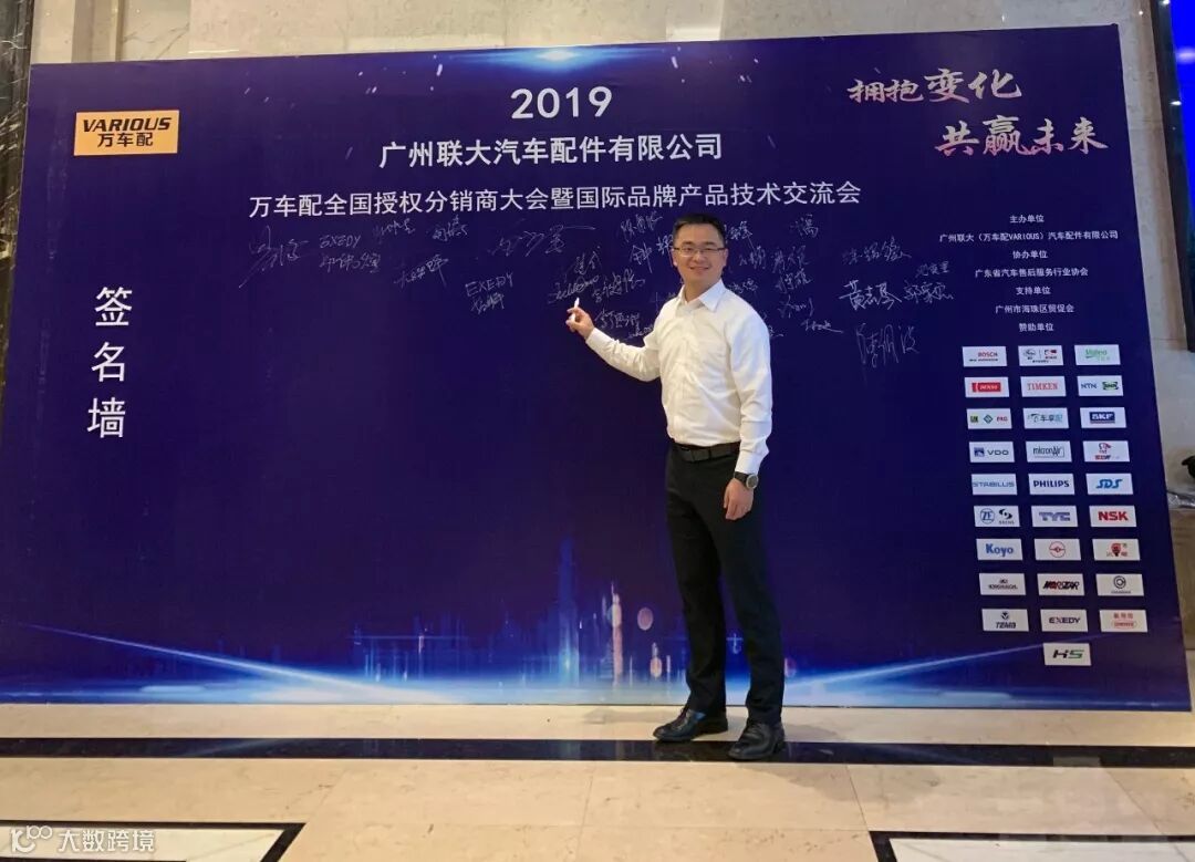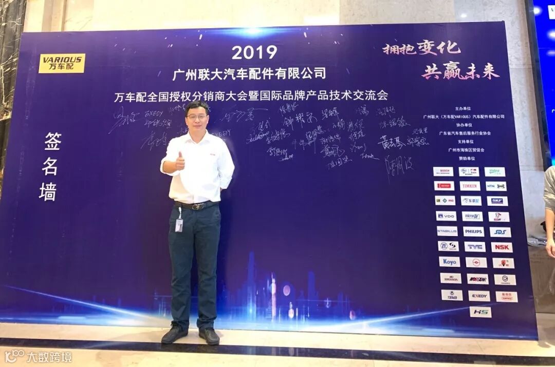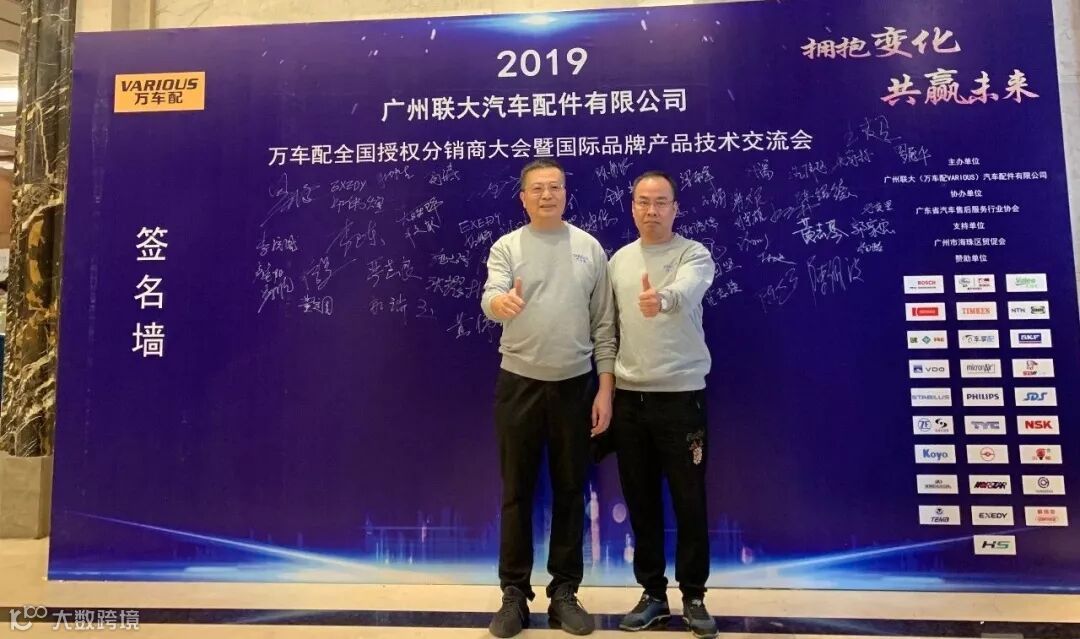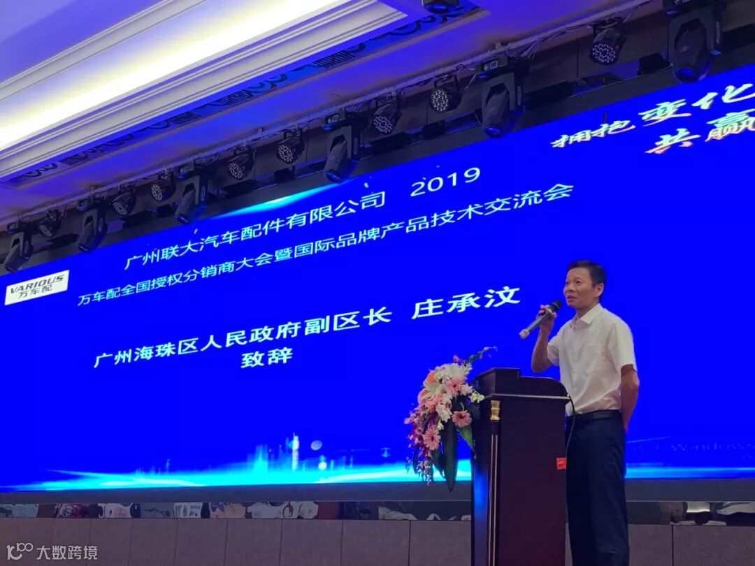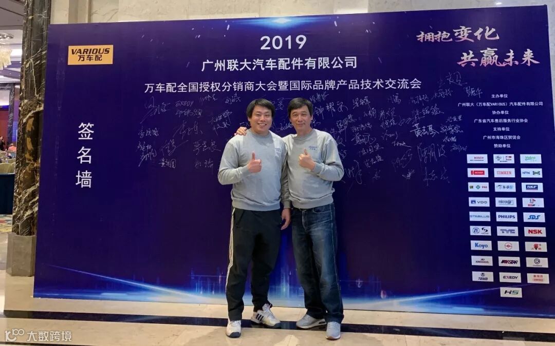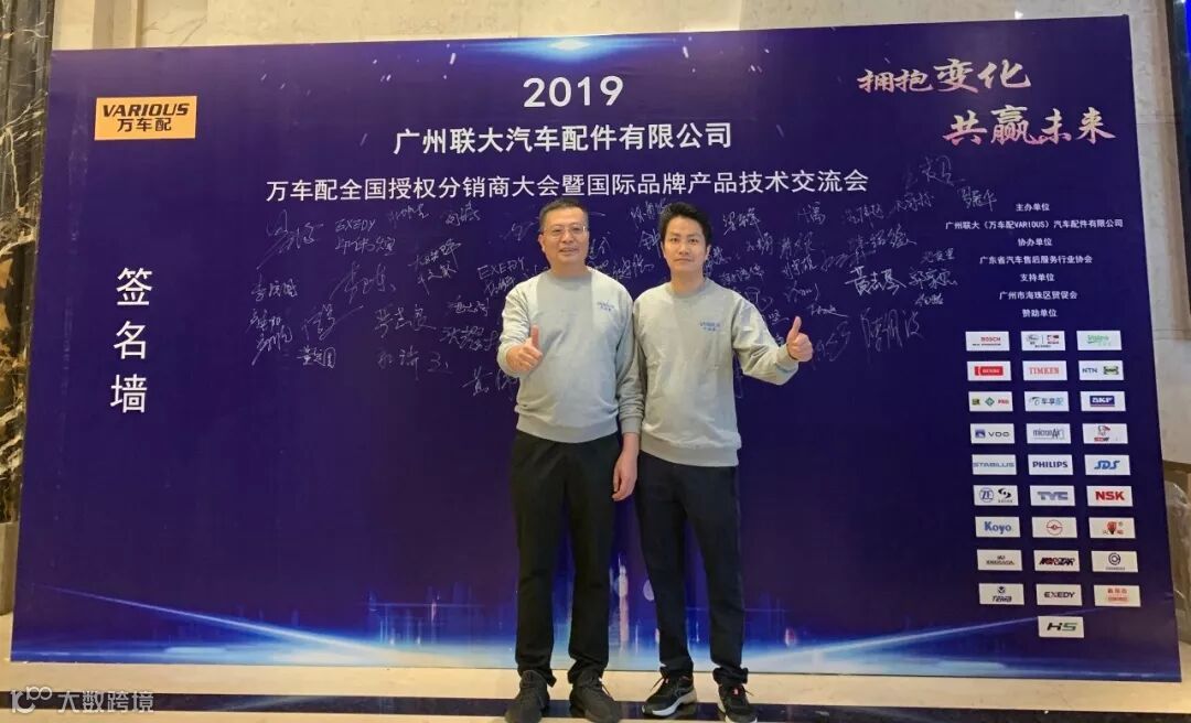 2019年10月11日,在美丽的羊城广州举行了广州联大汽车配件有限公司 — 万车配全国授权分销商大会暨国际品牌产品技术交流会。大会在广州海珠区卡威尔酒店举行,由广州联大汽车配件有限公司主办,广东省汽车售后服务行业协会、广州市海珠区贸促会协办,并有众多国际品牌公司支持,包括:博世、盖茨、法雷奥、日联电装、上海车享、大陆(VDO)、铁姆肯、斯凯孚、恩梯恩、舍弗勒、科德宝、索菲玛、堤维西、飞利浦、采埃孚、斯泰必鲁斯、湘火炬、恩斯克、捷太格特、声佳、纳铁福、无锡永凯达、安徽北泰、曲阜天博、昌辉、上海上制、爱思帝、泰明顿、科帝克、海山舟山等。