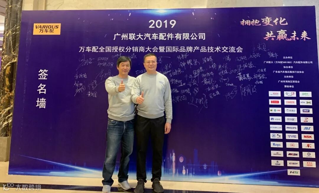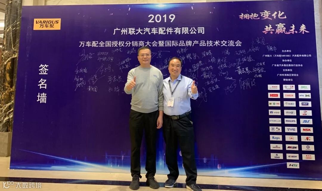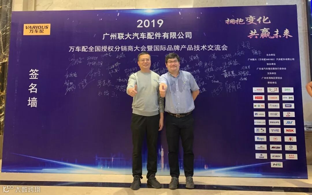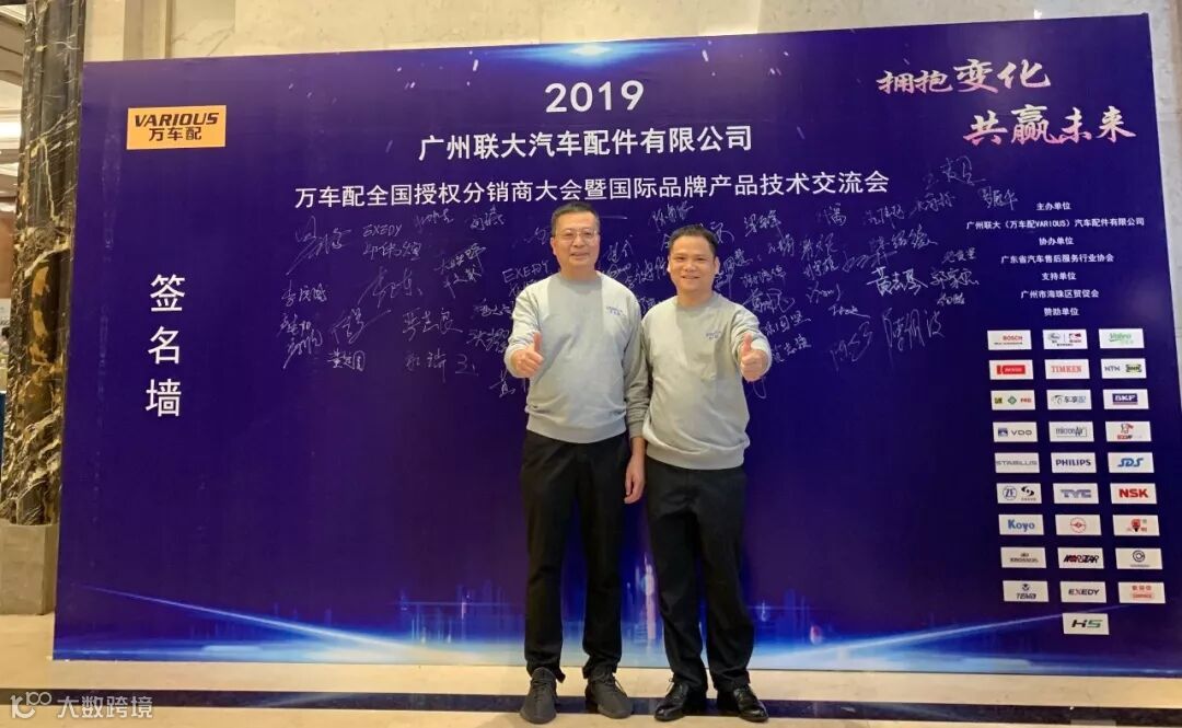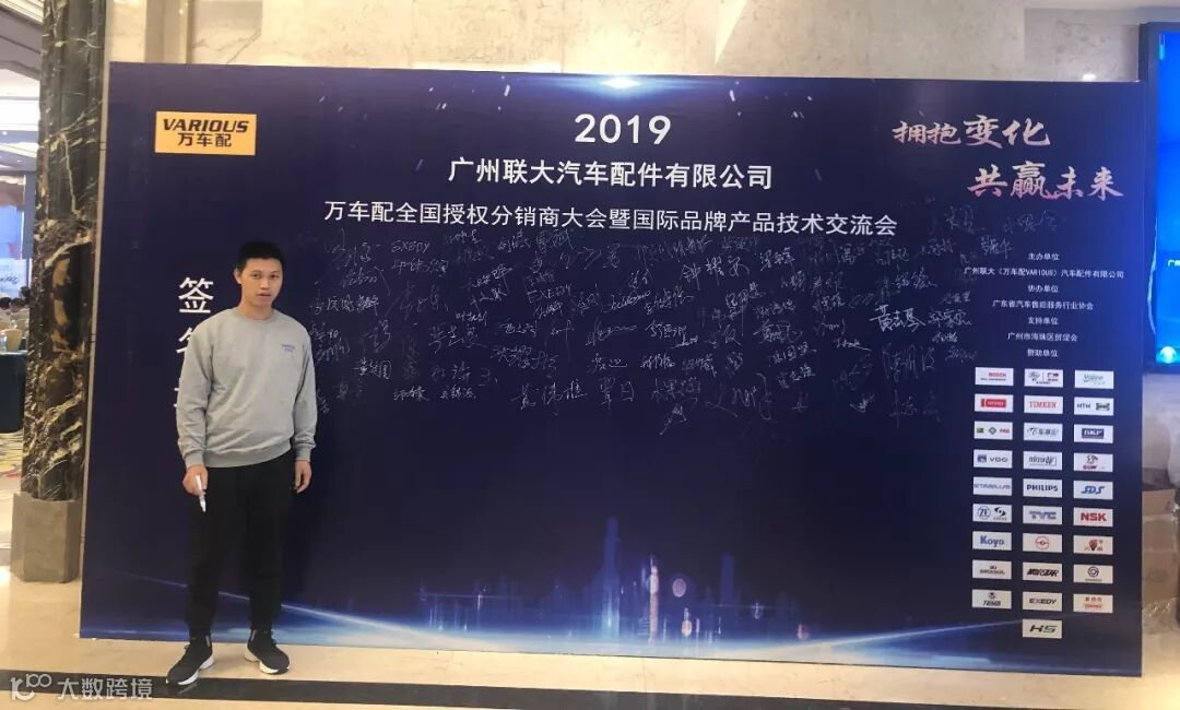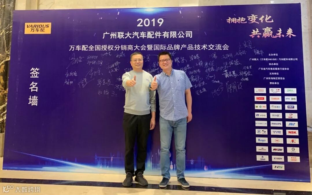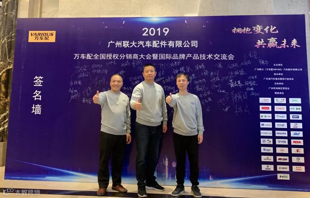2019年10月11日,在美丽的羊城广州举行了广州联大汽车配件有限公司 — 万车配全国授权分销商大会暨国际品牌产品技术交流会。大会在广州海珠区卡威尔酒店举行,由广州联大汽车配件有限公司主办,广东省汽车售后服务行业协会、广州市海珠区贸促会协办,并有众多国际品牌公司支持,包括:博世、盖茨、法雷奥、日联电装、上海车享、大陆(VDO)、铁姆肯、斯凯孚、恩梯恩、舍弗勒、科德宝、索菲玛、堤维西、飞利浦、采埃孚、斯泰必鲁斯、湘火炬、恩斯克、捷太格特、声佳、纳铁福、无锡永凯达、安徽北泰、曲阜天博、昌辉、上海上制、爱思帝、泰明顿、科帝克、海山舟山等。
