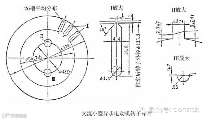 图2所示为小型异步电动机转子冲片。转子冲片轴孔有键槽(其角起标记作用)和平衡槽。平衡槽为了减少转子不平衡量而设。
