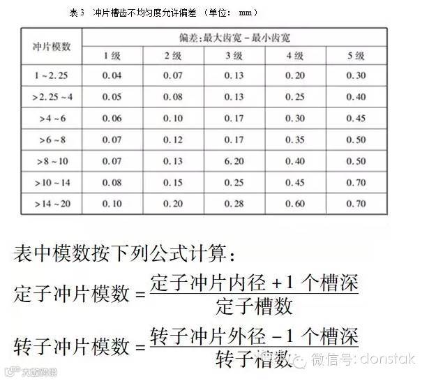 5. 冲片槽齿分布不均匀度(或称大小牙)即最大与最小齿宽度之差,应符合图纸及有关工艺文件的规定,如无明确规定,可参考表3中3级或4级精度检验。