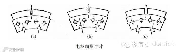 为了便于研究电机铁心的结构与工艺,按冲片的形状分为圆形冲片、扇形冲片和磁极冲片。