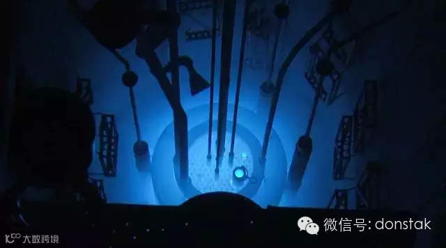 这是得克萨斯奥斯汀大学核工程实验室的反应堆。这种幽冷的蓝光来自所谓的“契伦科夫辐射”:当带电粒子高速穿越电解质,其速度甚至比光在这种介质里的速度还快,就会产生这样的蓝光。其原理与超音速时的音爆有一定的类似之处。反应堆常常放在水中,水的光速只有真空光速c的四分之三,所以粒子很容易在不违反相对论、不超过真空光速的条件下,超越水中的光速。