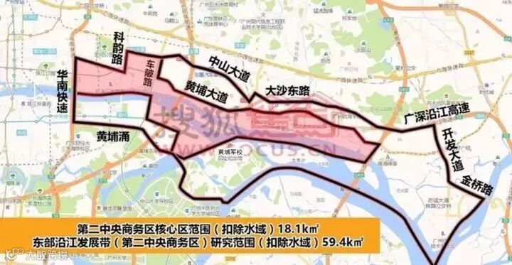 据了解,广州第二中央商务区地处穗莞深、广中珠、广佛肇的交汇处,包括了广州黄埔区、天河区和海珠区。其中,黄埔区部分的13.4平方公里(不含水域),以黄埔临港经济区为核心,包括鱼珠、黄埔老港、文冲等片区。