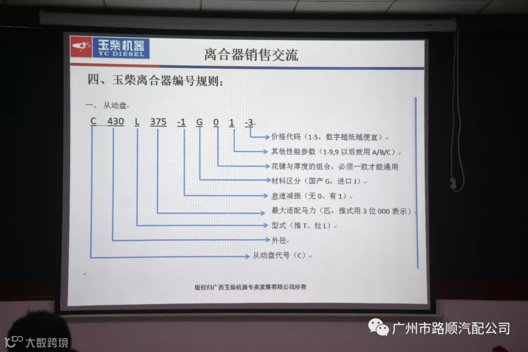 6月20日,为了促进业务及销售的提高及增长,广州路顺公司诚邀广州通聚公司甘经理来广州路顺新装修的培训会议室,为路顺员工上了一堂“玉柴”离合器销售交流培训课。