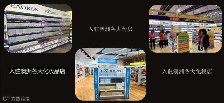在澳洲,EAORON入驻超过900家门店,其中包括全球著名的连锁会员店COSTCO,还有各种澳洲本地的化妆品店、免税店、大药房等等,我们的产品,存在于澳洲各地。