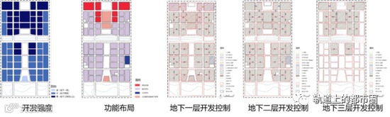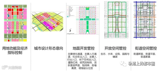 根据临空经济区功能、自然条件可以划分为25个风貌控制单元,通过对各类风貌要求进行传导和落实。每个单元包含地上与地下图则两个部分的内容,其中地上图则包含5项内容,分别是用地功能及经济指标控制、城市设计形态控制、地上开发管控、地下开发管控、开放空间管控和街道空间管控;地下图则包含3-5项内容,分别是开发强度、功能布局、地下一层开发控制、地下二层开发控制、地下三层开发控制。